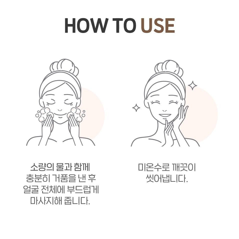 After taking an appropriate amount on wet hands and lathering enough, gently massage the entire face and rinse thoroughly with lukewarm water.