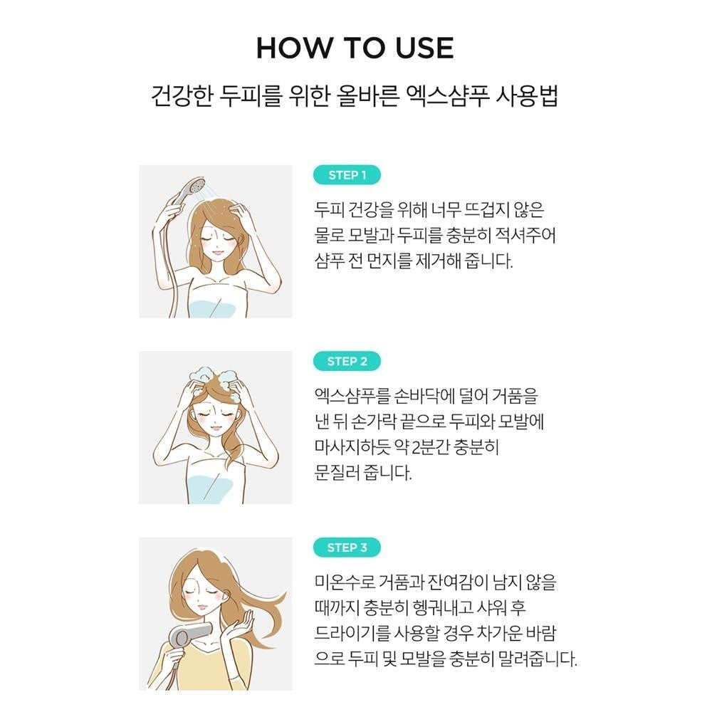 After sufficiently moistening the scalp and hair with lukewarm water, apply an appropriate amount to the hands and lightly lather, gently massage the hair and scalp, and rinse thoroughly.