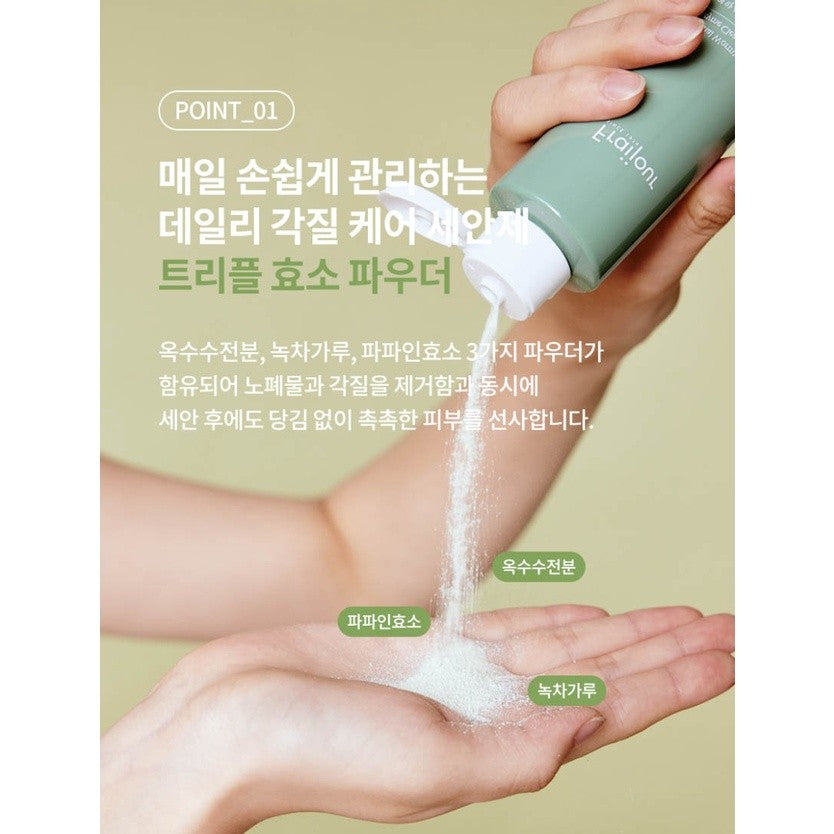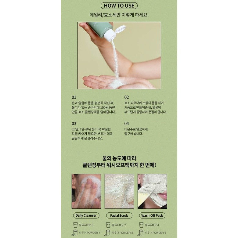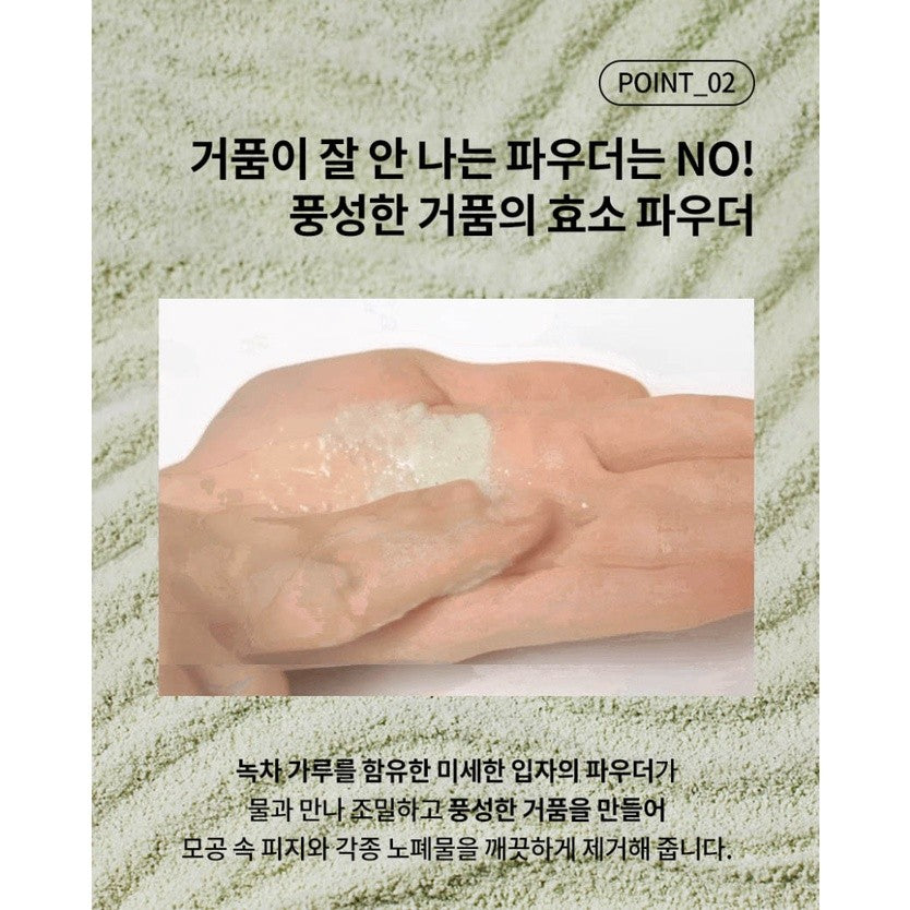 Corn starch, sodium cocoyl isethionate, sodium lauroyl glutamate, kaolin, green tea powder, diglycerin, allantoin, maltodextrin, papain (2000ppm), chromium oxide green, salicylic acid, madecassoside, dextrin, Asia Tycoside, mugwort leaf extract (970ppm), glycolic acid, gluconic acid, lactic acid, fragrance, limonene, linalool