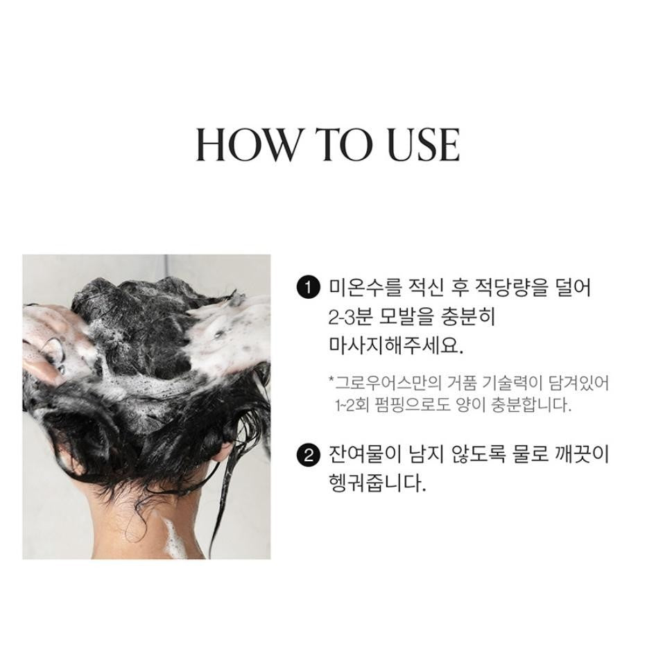 01. After soaking in lukewarm water, take an appropriate amount and massage the hair thoroughly for 2-3 minutes.