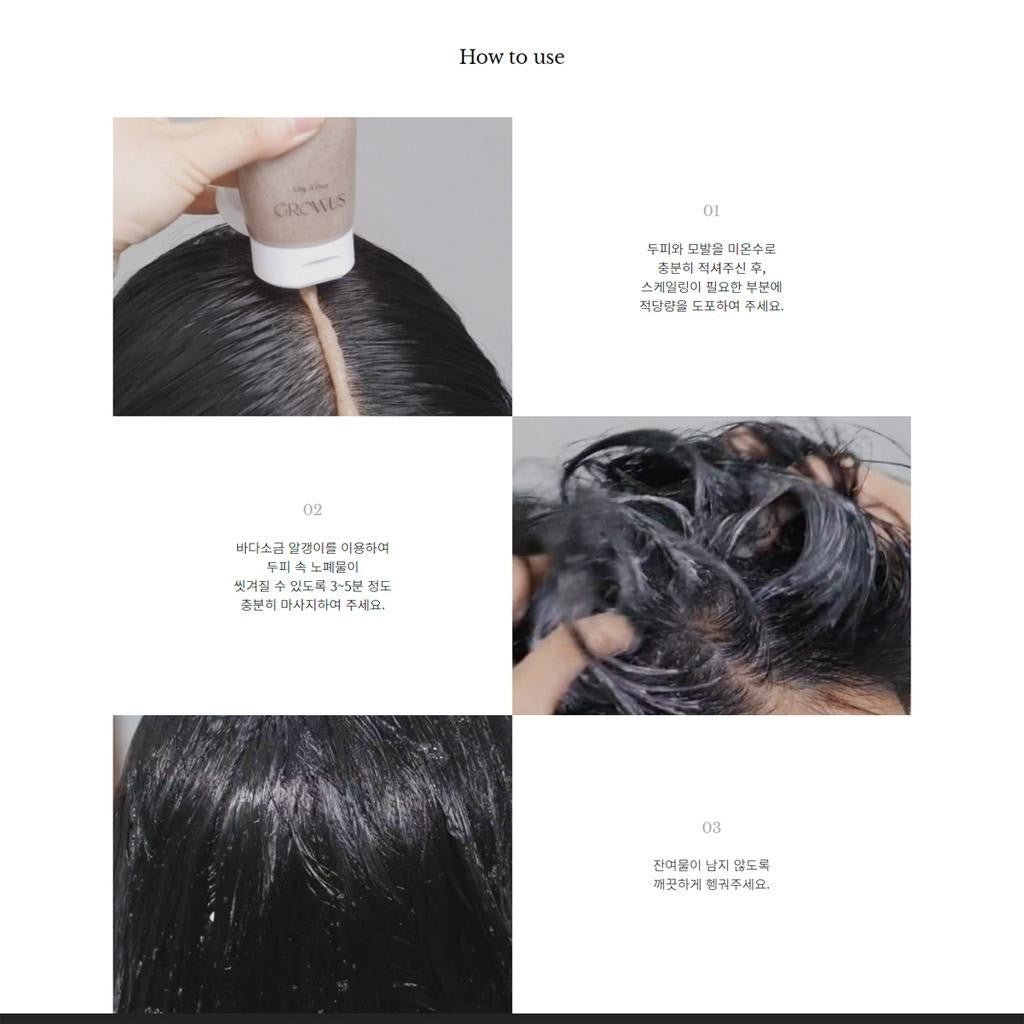 Wet your scalp and hair thoroughly with lukewarm water, apply an appropriate amount evenly, massage with salt grains, and rinse thoroughly with water.