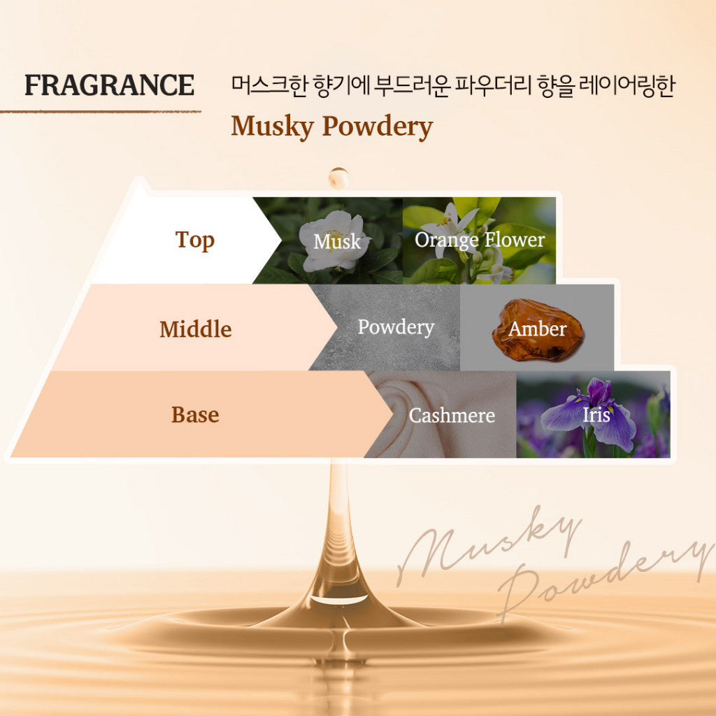 Cyclopentasiloxane, dimethicone, C12-15 alkyl benzoate, disiloxane, PEG-10, fragrance, argan kernel oil, camellia seed oil, silk powder, ceramide NP, hexylcinnamal, benzyl salicylate , linalool, alpha-isomethylionone, butylphenylmethylpropional, limonene, geraniol, hydroxycitronellal, eugenol, citronellol