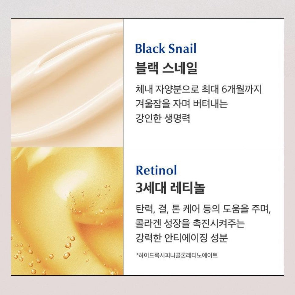 - Double elasticity care with 50% black snail content + adenosine