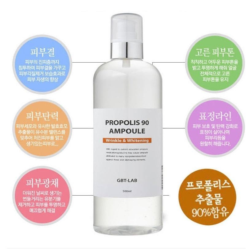 Propolis extract, purified water, niacinamide, 1,2-hexanediol, millet leaf/stem extract, arginine, carbomer, betaine, xanthan gum, sodium hyaluronate, honey extract, royal jelly extract, centella asiatica extract, Anhydrous xyli, green tea extract, snail mucus extract, adenosine, disodium EDTA