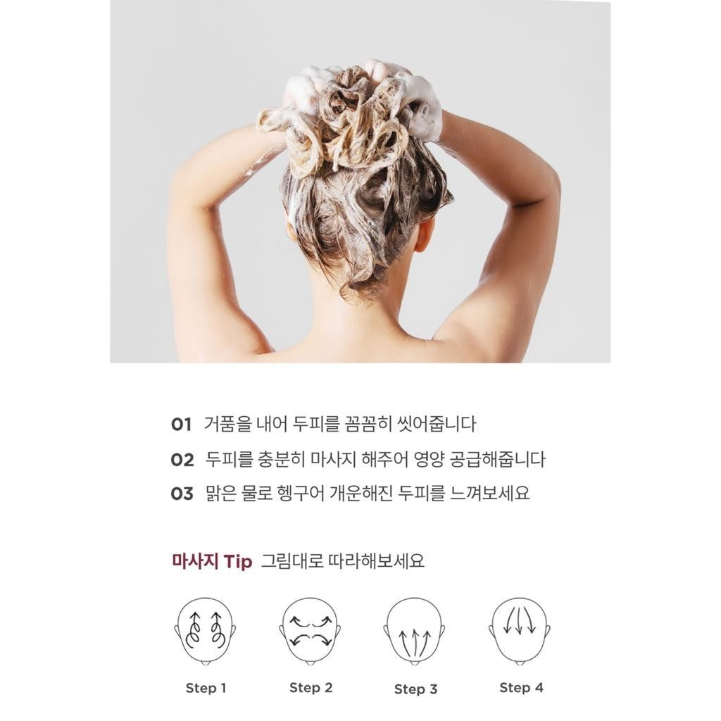Purified water, glycerin, lauramidopropyl betaine, disodium laureth sulfosuccinate, decyl glucoside, TA-cocoyl glutamate, green tea extract, rosemary leaf extract, sauerkraut root extract, chamomile flower extract, mung bean seed extract Sprout extract, Centella asiatica extract, Mildew wheat extract (Eoseongcho extract), Spanish licorice root extract, Manchuria birch bark extract, Sori Root extract, Western Songak extract, Arnica montana flower extract, Seokchangpo root/stem extract, Watercress leaf extract, Why Clownbeard flower extract, caprylyl glycol, dipropylene glycol, burdock root extract, black willow bark extract, hydrolyzed corn protein, hydrolyzed wheat protein, hydrolyzed soybean protein, hydrolyzed Keratin, guar hydroxypropyl trimonium chloride, glyceryl caprylate, panthenol, citric acid, garlic extract, lemon oil, lychee fruit oil, sentient geranium flower oil, rosemary leaf oil, eucalyptus leaf oil, 1,2-hexane Diol, propylene glycol, butylene glycol, citral, limonene