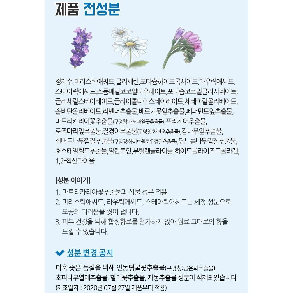 Water,Myristic Acid,Glycerin,Potassium Hydroxide,Lauric Acid,Stearic Acid,Sodium Methyl Cocoyl Taurate, Potassium Cocoyl Glycinate,Glyceryl Stearate,Glycol Distearate,Cetearyl Olivate,Sorbitan Olivate, Lavandula Angustifolia Extract,Menthadyma Leaf Extract,Menthadyma Leaf Piperita (Peppermint) Leaf Extract, Chamomilla Recutita (Matricaria) Flower Extract,Freesia Refracta Extract,Rosmarinus Officinalis (Rosemary) Leaf Extract,Plantago Asiatica Extract,Diospyros Kaki Leaf Extract,Salix Alba (Willow) Bark Extract, Ulmus Campestris (Elm) Bark Extract, Laminaria Digitata Extract, Allantoin, Butylene Glycol, Hydrolyzed Collagen, 1,2-Hexanediol