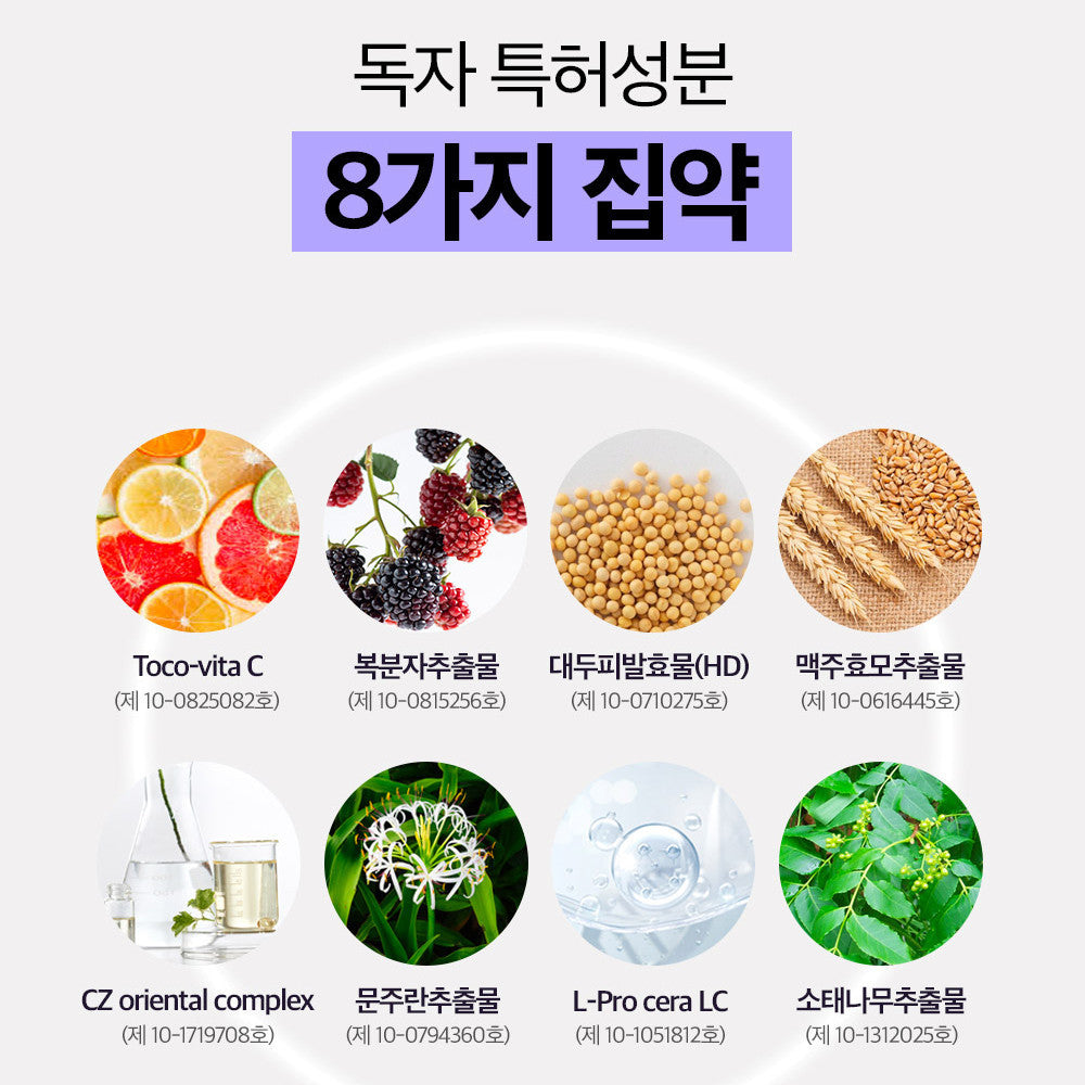 Purified water, dipropylene glycol, glycerin, butylene glycol, cyclomethicone, niacinamide, PEG-240/HDI copolymer bis-decyltetradeceth-20 ether, PEG/PPG-17/6 Copolymer, ethylhexyl methoxycinnamate, glyceryl caprylate, polysorbate 20, PVP, cetearyl olivate, hydroxyethyl cellulose, carbomer, sorbitan olivate, arginine, adenosine, disodium EDT. A, glyceryl acrylate/acrylic acid copolymer, tocopherol, potassium laurate, silk extract, rice protein, yeast/bokbunja fermentation filtrate, brewer's yeast extract, propanediol, hydrolyzed collagen, 1,2-hexane Diol, caprylic/capric triglyceride, ascorbyl tocopheryl acetate, hydrogenated lecithin, sodium hyaluronate, sucrose palmitate, ethanol, hydrogenated polydecene, stearyl alcohol, hydrolyzed Royal jelly protein, macadamia seed oil, lotus leaf extract, polysorbate 80, stearic acid, black truffle extract, agar, pullulan, cellulose, PEG-15 glyceryl isostearate, glyceryl stearate, cholesterol, Bacillus/soybean fermented extract, 2-oleamido-1,3,4-octadecattriylprolinate, propolis extract, Moon Juran extract, cetyl alcohol, caprylyl glycol, Triacium vulgaris extract, Rock pine extract, Soapia tree Xylem extract, gold colloid, SR-spider polypeptide-1, neem flower extract, holy basil leaf extract, neem leaf extract, papain, turmeric root extract, coral horse extract, phenoxyethanol, yellow 4 No., Red No. 504, Fragrance
