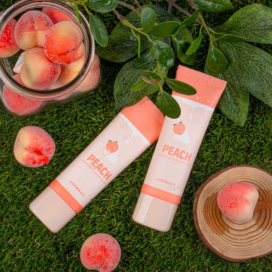 Purified water, dimethicone, propanediol, glycerin, titanium dioxide, 1,2-hexanediol, niacinamide, rice bran oil, sodium acrylate/sodium acryloyl dimethyl taurate copolymer, dipropylene glycol, Peach extract, Peach tree leaf extract, Peach tree xylem extract, Peach tree flower extract, Provence rose flower extract, Camellia flower extract, Arnica Montana flower extract, Port marigold flower extract, lavender flower extract, adenosine, allantoin, butylene glycol Cole, dimethiconol, polyglutamic acid, cyclopentasiloxane, triethoxycaprylyl silane, isohexadecane, carbomer, polysorbate 80, disodium EDTA, fragrance