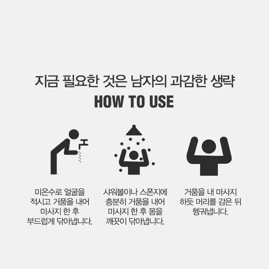 1. Wet your face with lukewarm water and massage it with foam, then gently wipe it off.