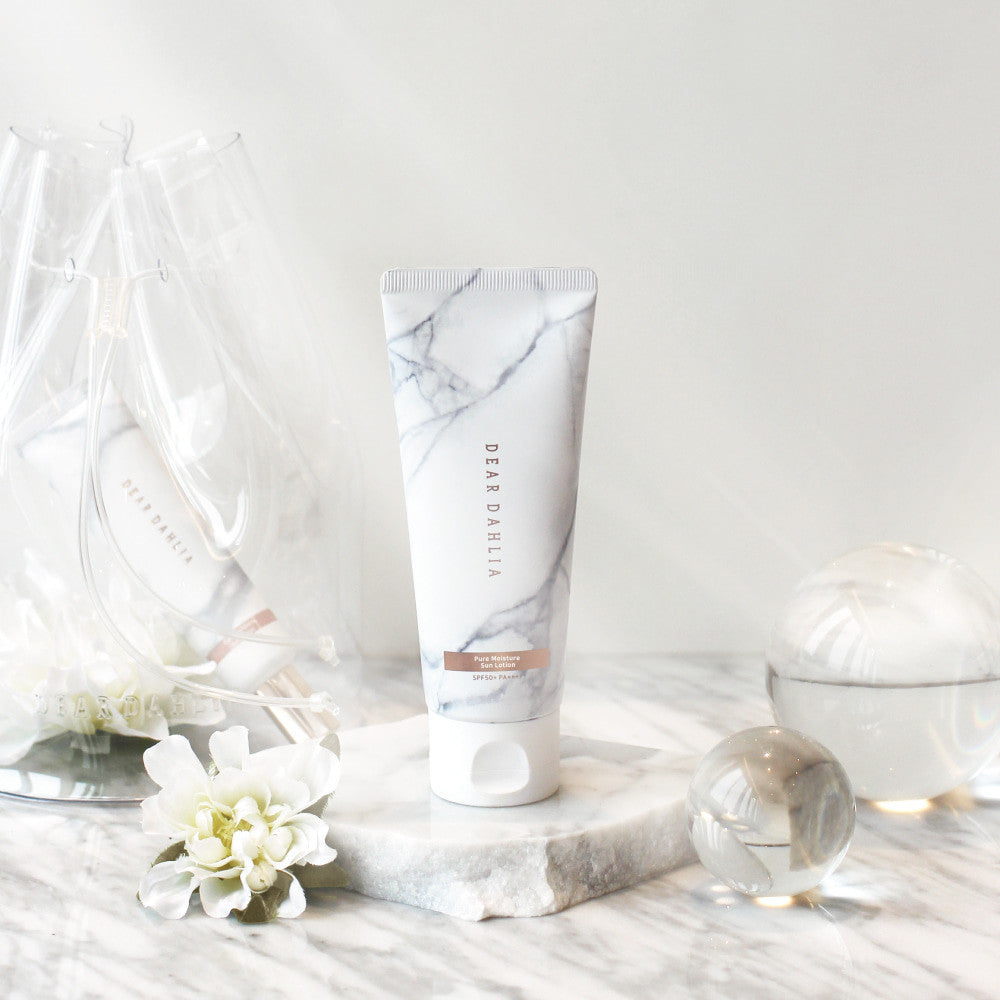Dear Dahlia Skin Paradise Pure Moisture Sun Lotion contains mild inorganic UV blockers to protect your skin from UV rays