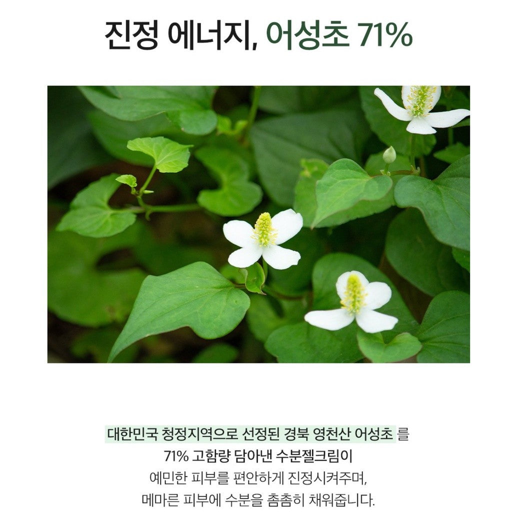 Moisture gel cream containing 71% Houttuynia cordata extract from Yeongcheon, Gyeongsangbuk-do, providing deep moisture and soothing effects.