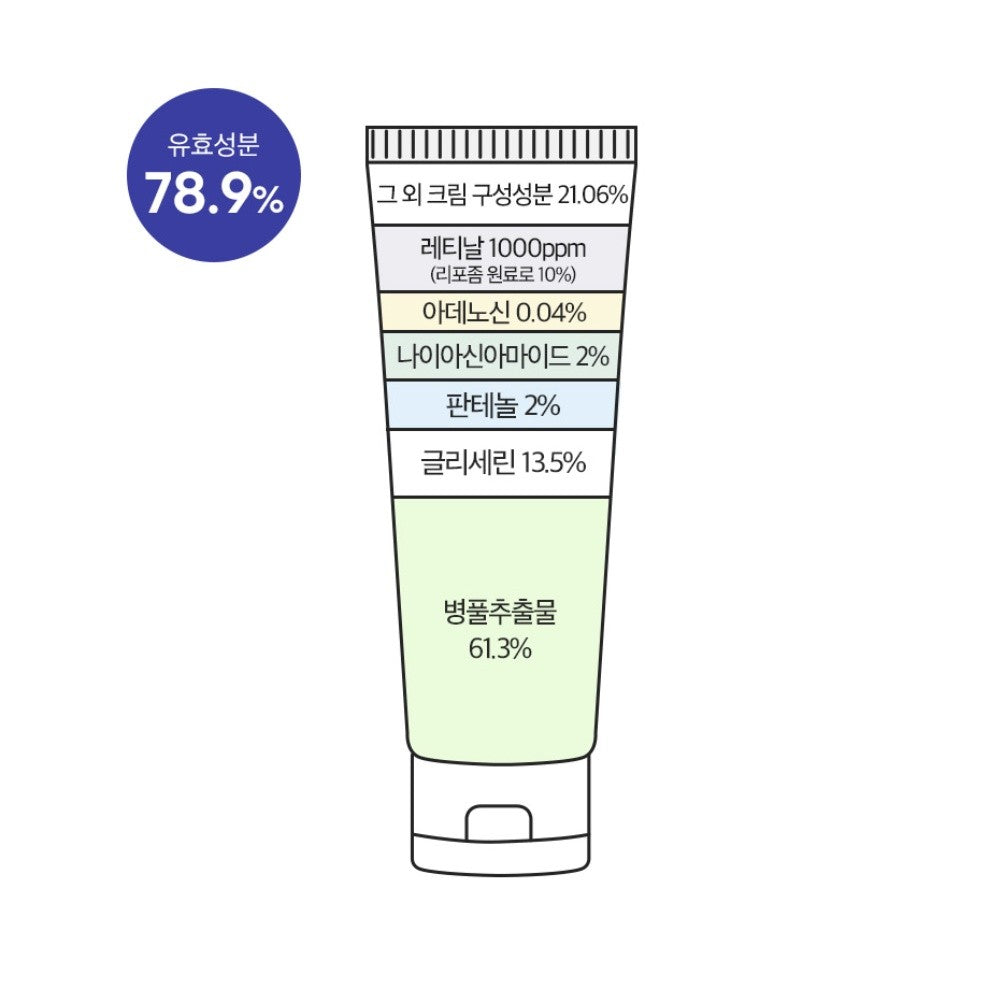 Centella asiatica extract, glycerin, purified water, hydrogenated polydecene, caprylyl methicone, niacinamide, panthenol, pentylene glycol, 1,2-hexanediol, caprylic/capric triglyceride, ascorbic acid, White rice flower extract, butylene glycol, retinal (1000ppm), lecithin, polymethyl silsesquioxane, ammonium acryloyl dimethyl taurate/V picopolymer, acrylate/C10-30 alkyl acrylate crosspolymer, hydroxyl Ethyl acrylate/sodium acryloyldimethyl taurate copolymer, tromethamine, xanthan gum, adenosine, t-butyl alcohol, sorbitan isostearate, ethylhexylglycerin, disodium EDTA, fragrance