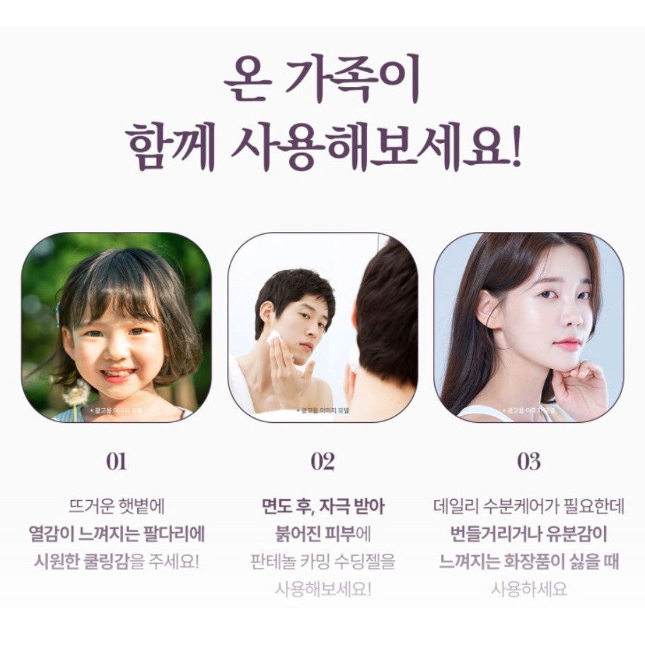- A refreshing gel-type product that contains 5% panthenol, madecasso side, and natural patented ingredients for dry and sensitive skin, providing continuous moisture and soothing sensation to create healthy skin.