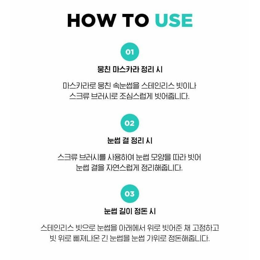 Brush the eyebrows from bottom to top with a stainless steel comb and fix them, and trim the long eyebrows that protrude above the comb with eyebrow scissors.