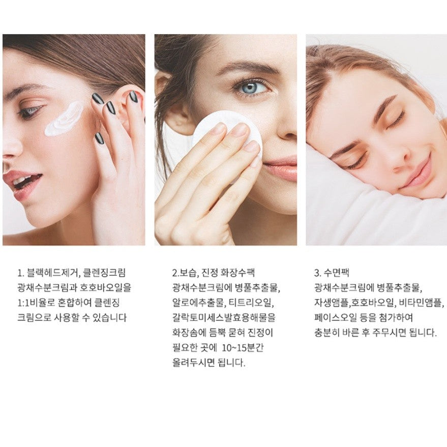 After preparing the skin, apply an appropriate amount of glowing moisturizing cream and let it absorb evenly into the skin. It is even better if you add functional ampoules such as moisturizing elasticity ampoule and whitening ampoule.