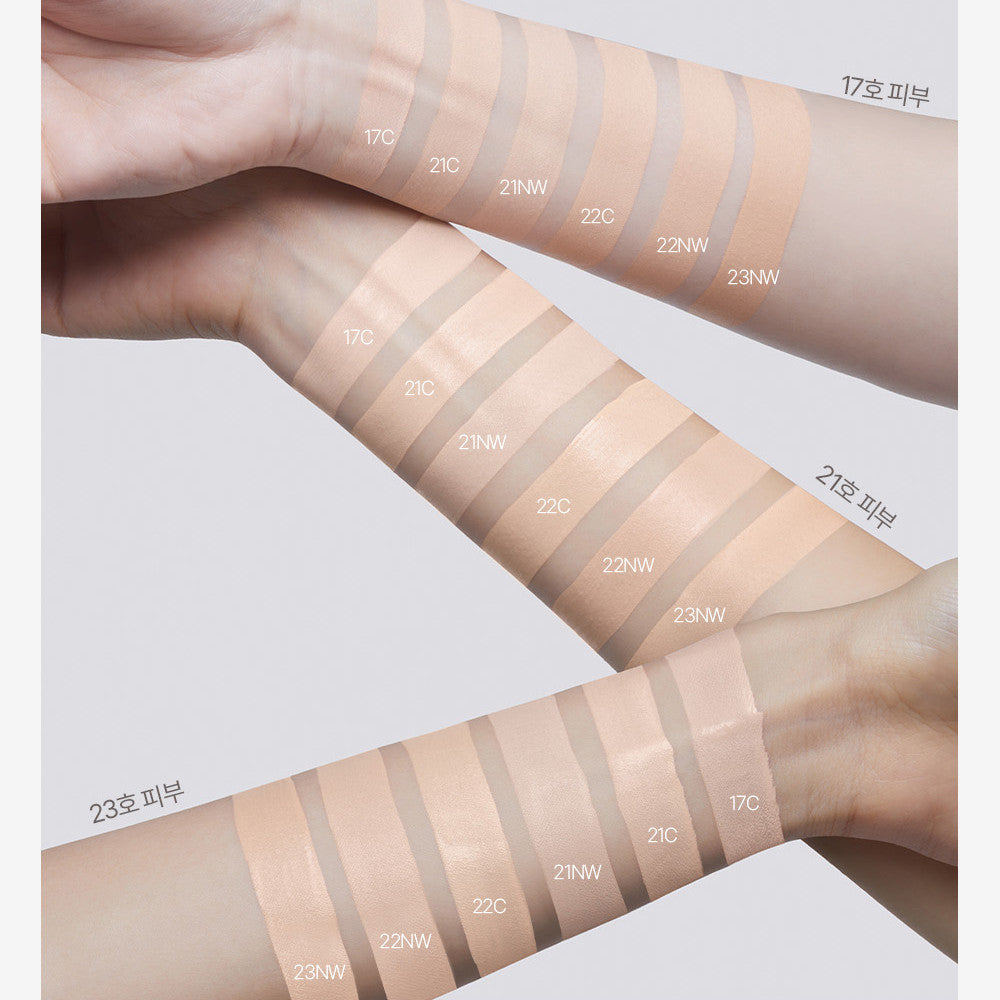 No. 21 Light beige purified water, cyclopentasiloxane, titanium dioxide, glycerin, dimethicone, dipropylene glycol, butyl octyl salicylate, methyl methacrylate cross polymer, cetyl PG/PG-10/1 die Methicone, niacinamide, isododecane, disteadimonium hectorite, trimethylsiloxysilicate, polymethylsilsesquioxane, PG-10 dimethicone, enantia chloranta peel extract, apple extract, zinc Oxide, magnesium sulfate, dimethicone crosspolymer, polyglyceryl-3 polydimethylsiloxyethyldimethicone, triethoxycaprylylsilane, caprylyl glycol, aluminum hydroxide, glyceryl caprylate , ethylhexylglycerin, butylene glycol, inositol, mannitol, maltodextrin, saccharide hydrolysate, papain, tocopherol, bromelain, oleanolic acid, fragrance, yellow iron oxide, red iron oxide, black iron oxide