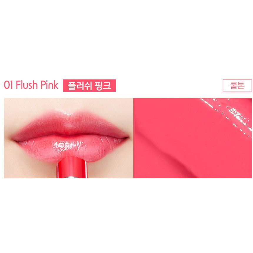A non-sticky, moisturizing lip balm with a vibrant, clear, dewy glow.