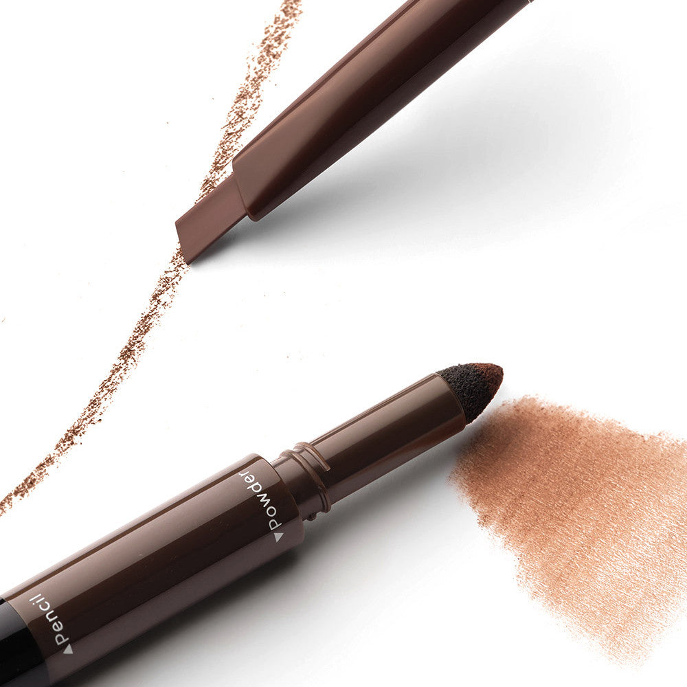 Use the pencil to draw your eyebrows, then fill in the natural shade with the powder.