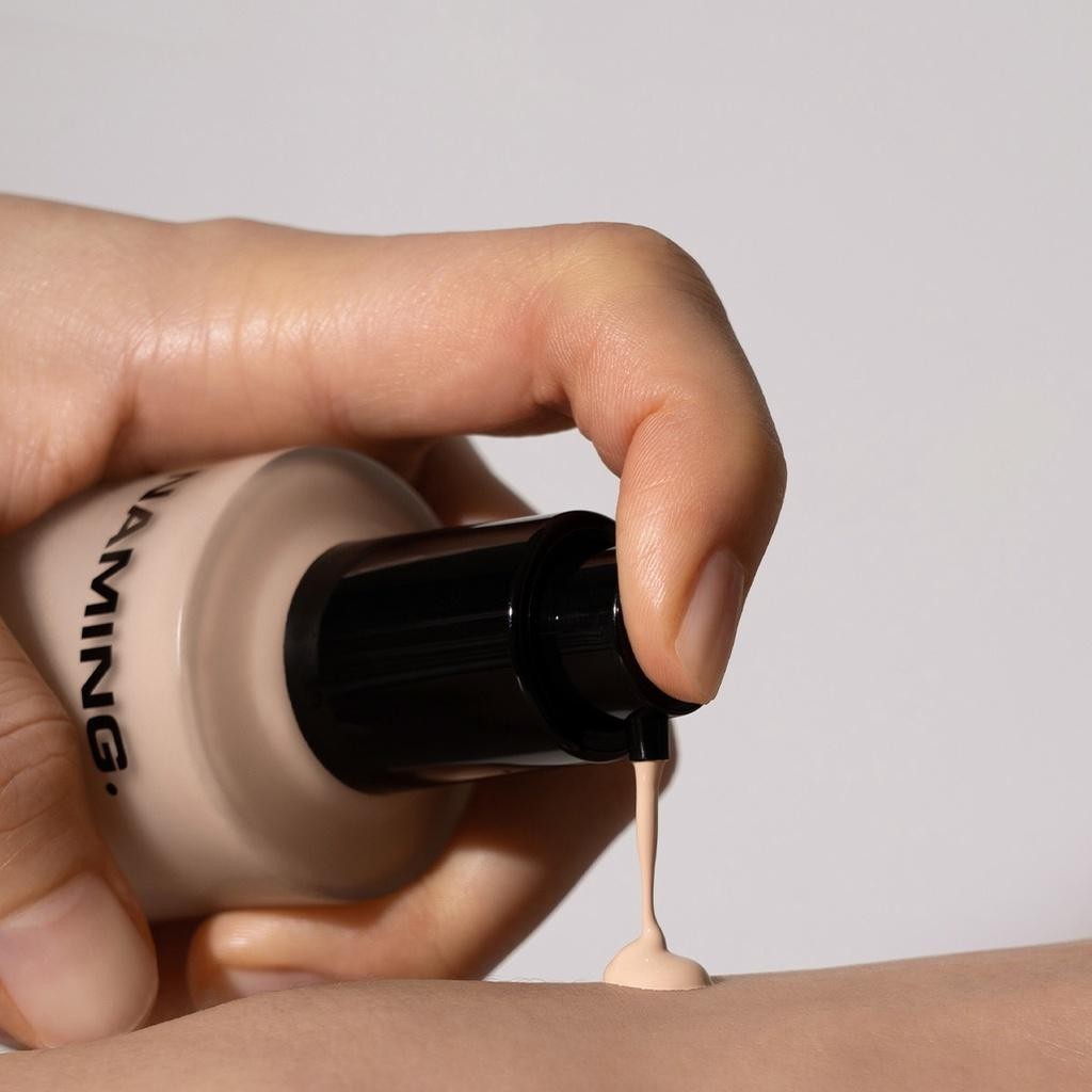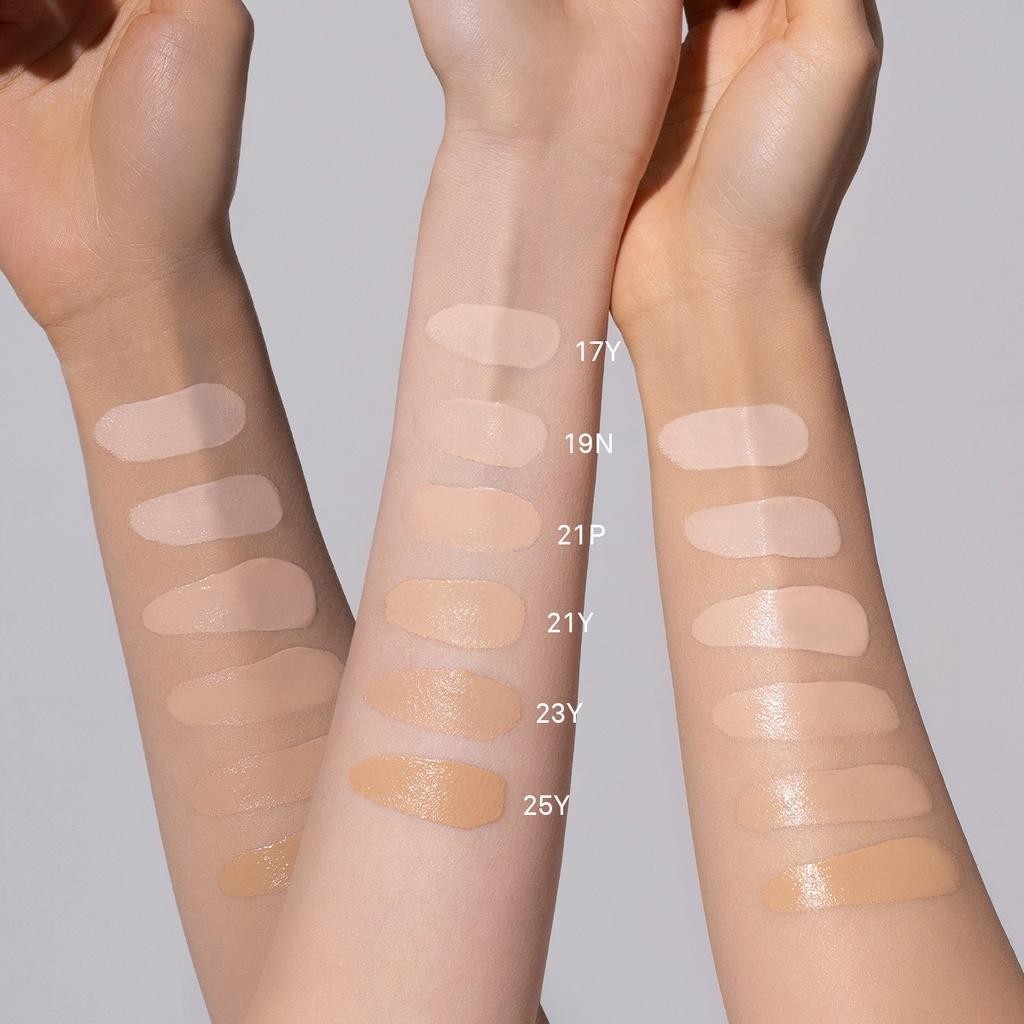 A foundation that allows for clear and clean makeup by increasing the coverage by layering a thin and light texture.