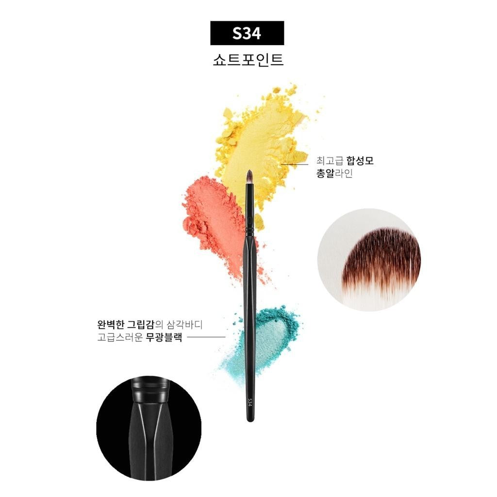 This is a long, thin bullet-shaped point brush, which is used to express delicate parts more three-dimensionally because the tip of the hair is sophisticated and sharp. It can be used when using eye products or to express or spread gradation.