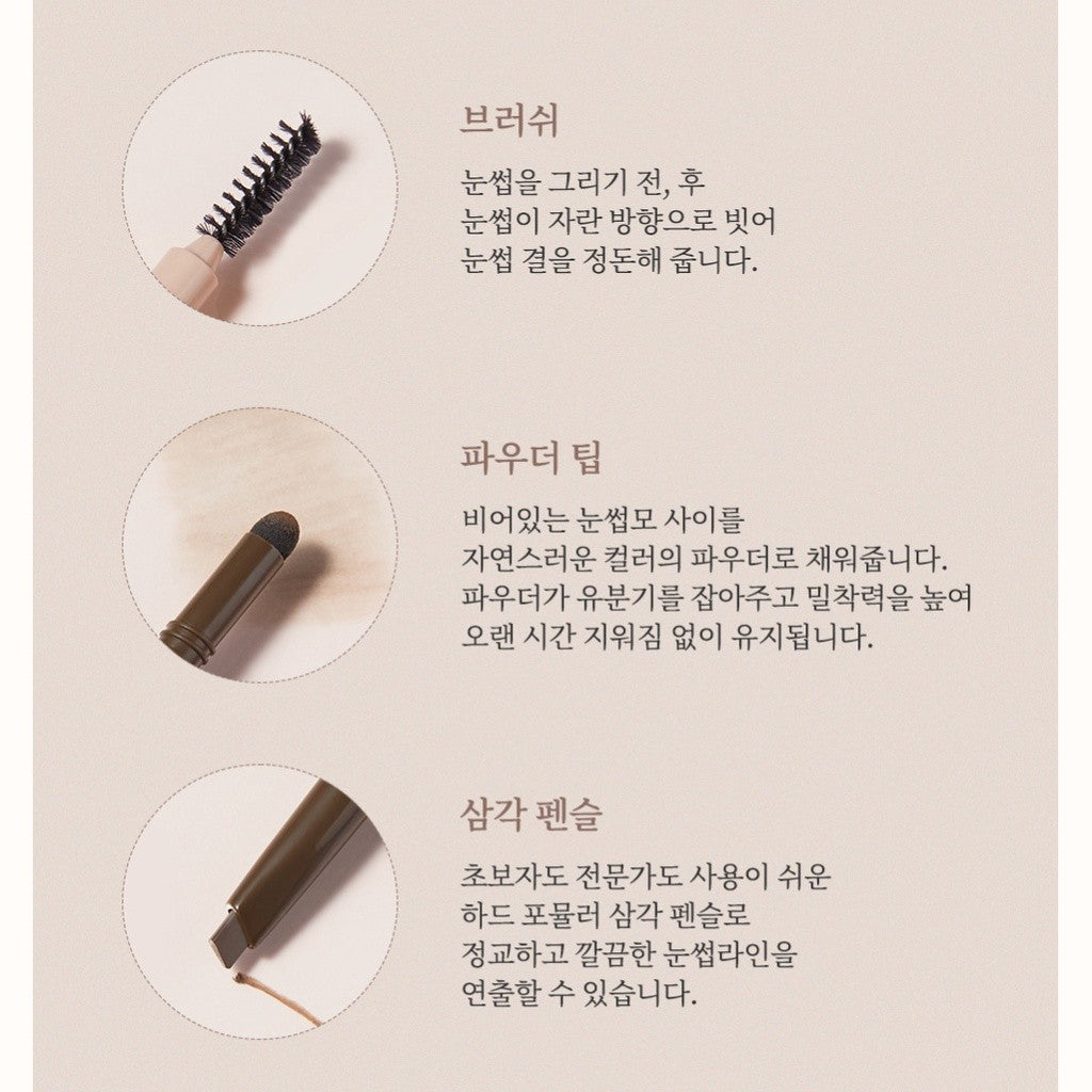 Use a triangular pencil to shape the eyebrows and shape the eyebrows, then fill in the gaps between the eyebrows naturally with powder.