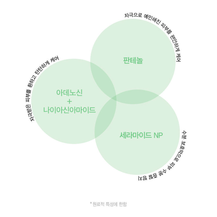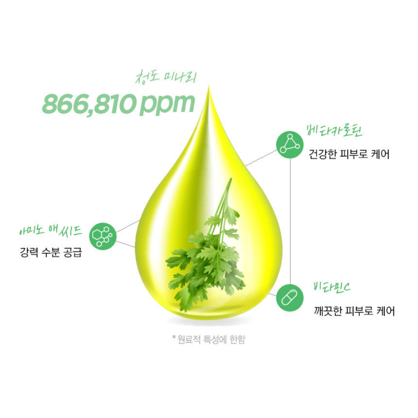 Minari extract (866,810ppm), Butylene glycol, Glycerin, 1,2-diol, Niacinamide, Dipropylene glycol, Carbomer, Arginine, Hydroxyethyl acrylate/sodium acryloyldimethyl taurate copolymer, Centella asiatica extract (980ppm), Indian mulberry leaf extract, Purified water, Ethylhexylglycerin, Adenosine, Disodium EDTA, Indian mulberry flower extract, Sorbitan isostearate, Ethanol, Panthenol, Asiaticoside (25ppb), Asiatic acid (12.5pp), Madecassic acid (12.5ppb), Madecassoside (10ppb), Ceramide NP