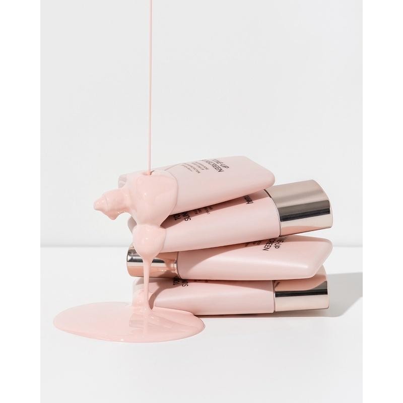 A fluid-type sunscreen that provides a natural tone-up brilliance effect with a bright pink color.