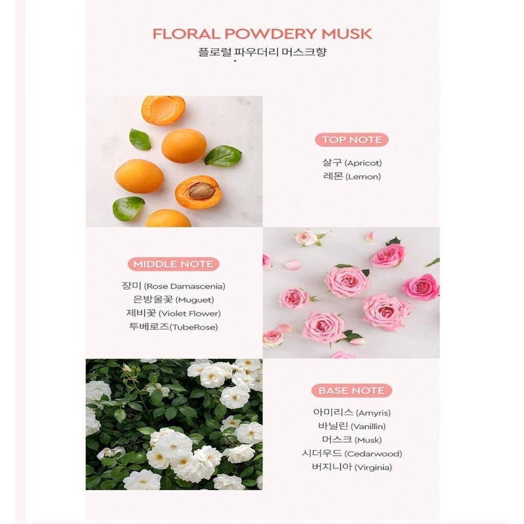 Purified water, sodium laureth sulfate, fragrance, cocamidopropyl betaine, polysorbate 60, sorbitol, 1,2-hexanediol, denatured alcohol, sodium chloride, rose damask water, cocamide mipha, sodium benzoate, Maltitol, caprylyl glycol, phenoxyethanol, citric acid, sodium metaphosphate, benzyl benzoate, alpha-isomethyl ionone, buteth-3, linalool, limonene, ethylhexylglycerin, butylene glycol, Polyquaternium-10, geraniol, citronellol, sodium benzotriazolylbutylphenol sulfonate, disodium EDTA, hexyl cinnamal, hydroxycitronellal, tributyl citrate, yellow No. 4, red No. 227, Tocopherol, Purple No. 401, Blue No. 1, Propanediol, Sodium Hyaluronate, Hydrolyzed Hyaluronic Acid, Sodium Hyaluronate Crosspolymer, Hyaluronic Acid, Sodium Acetylate Tid Hyaluronate